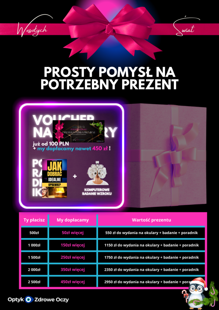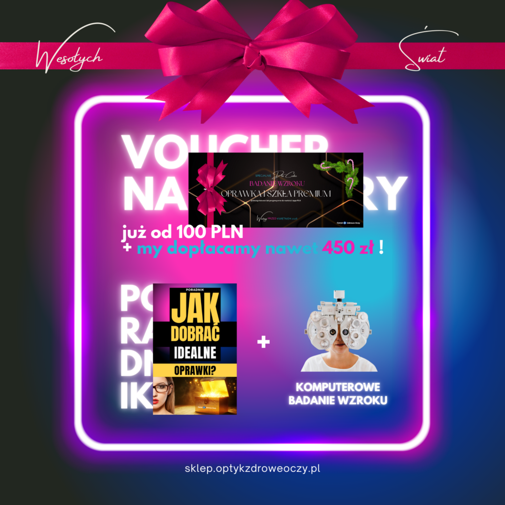 🎁 VOUCHER ŚWIĄTECZNY: Badanie wzroku + oprawka i szkła progresywne (do 2350 PLN)